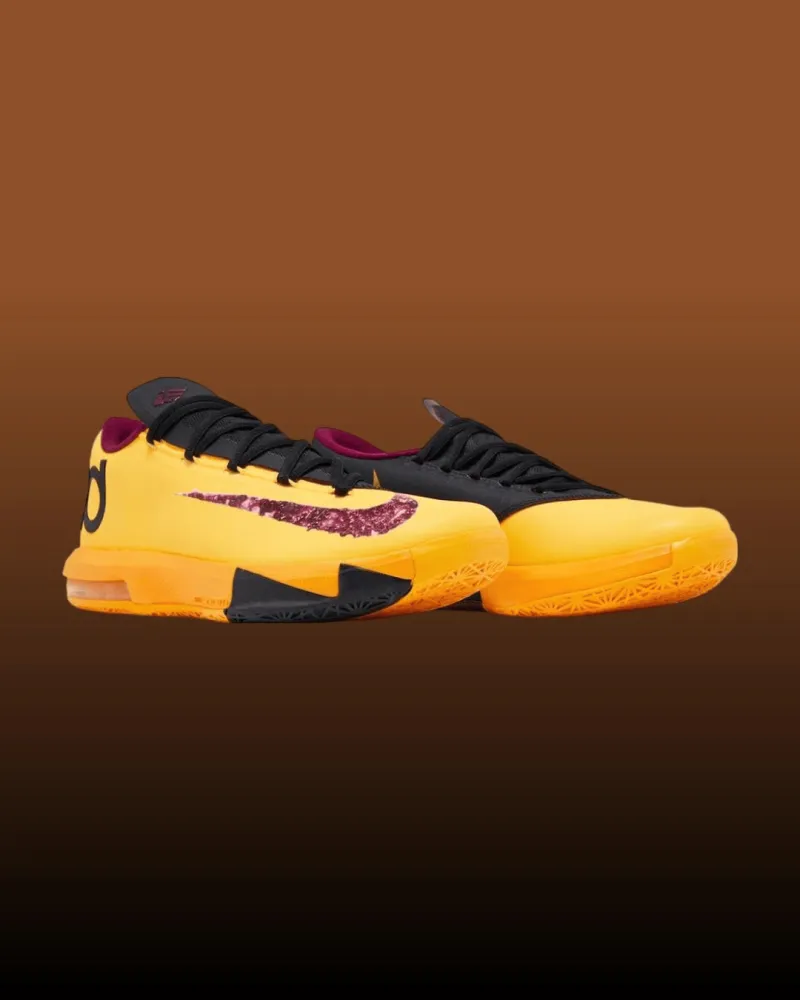 此配色灵感来自杜兰特最喜爱的花生酱和果冻三明治,黄色鞋面来自花生酱,搭配果酱图案Nike Swoosh和果酱色内衬,充满视觉辨识度。