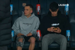 巴萨中场卡萨多本月被确认右膝外侧韧带部分撕裂,接受保守治疗,预计将伤缺两个月,他与另一位伤员伯纳尔现场观看了这场比赛,卡萨多更换发型、佩戴护具观赛。